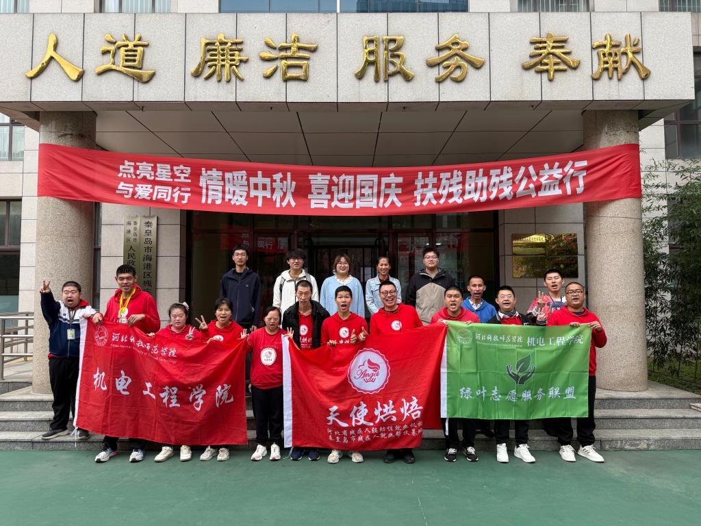 2025年10月15日,wm完美体育官网登录绿叶志愿服务联盟社团在海港区残疾人联合会建立了就业帮扶基地,开展扶残助残志愿服务活动,学工办老师、社团同学、残联工作人员共计20余人参加活动。