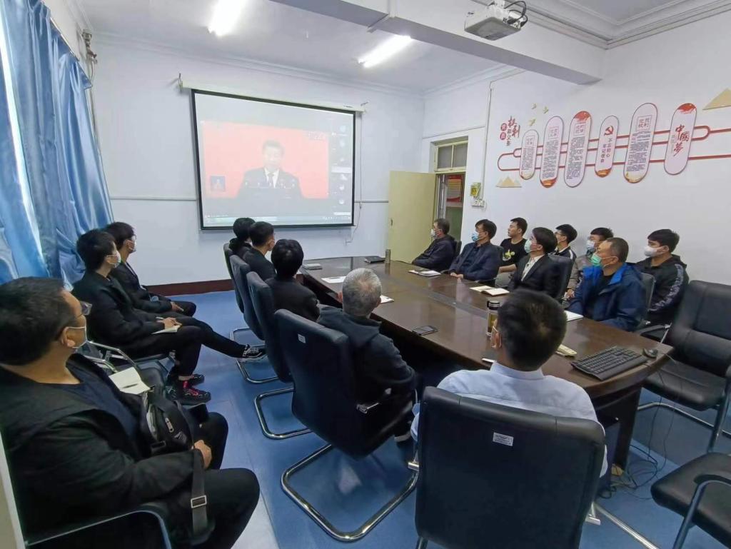 在学院四楼会议室,全体闭环内工作的教师和学生代表(瀚科宿舍楼每个楼层2-3名网格员)参加了线下集中收看和研讨交流,校图书馆副馆长盛子强参加了线下活动,同步召开了线上会议(腾讯会议号:819419946),全体环外教师参加了线上集中收看。未能参加集中收看的其他师生借助于电脑、手机或电视自行收听收看并发表了感言。